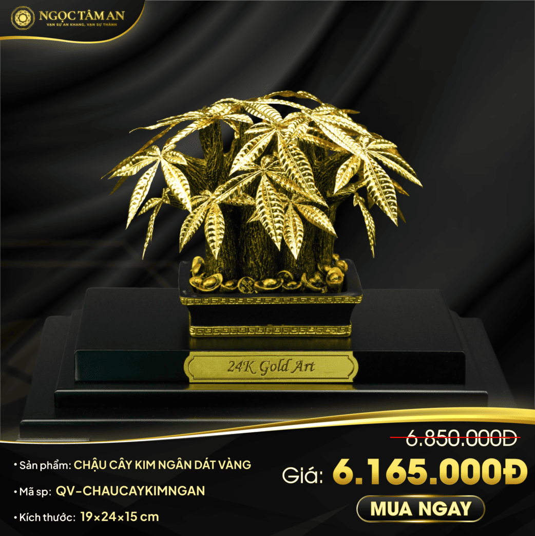 Sản phẩm mạ vàng 24K tại Ngọc Tâm An được chế tác với sự tỉ mỉ và khéo léo, đầy đủ chứng nhận chất lượng vàng. Không chỉ đơn thuần là món, mà còn là biểu tượng của sự tinh tế, sang trọng và màng ý nghĩa sâu sắc, giúp bạn gửi trọn thông điệp trọn vẹn.